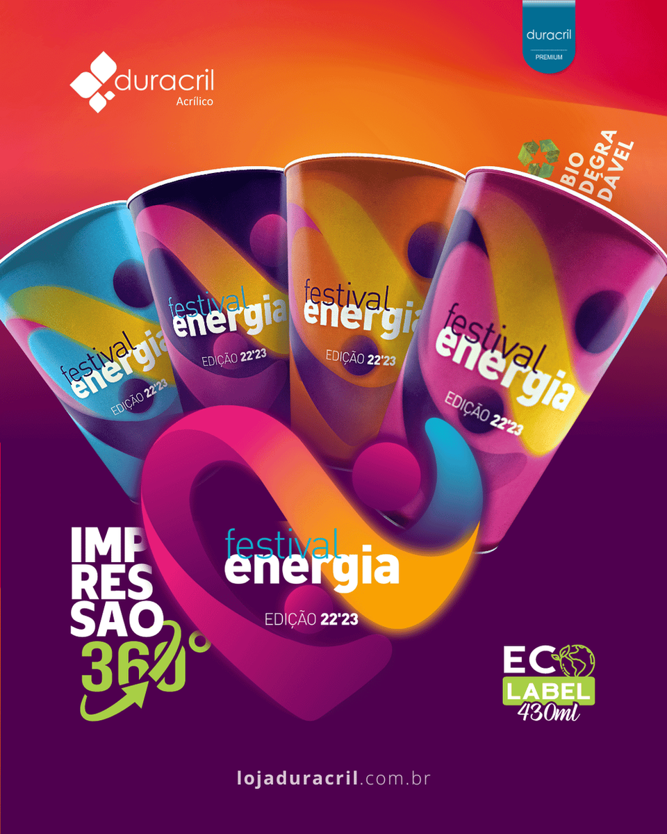 Nossos modelos Copo Ecológico 550 ml e Ecolabel 430 ml são fabricados com Polipropileno Biodegradável.